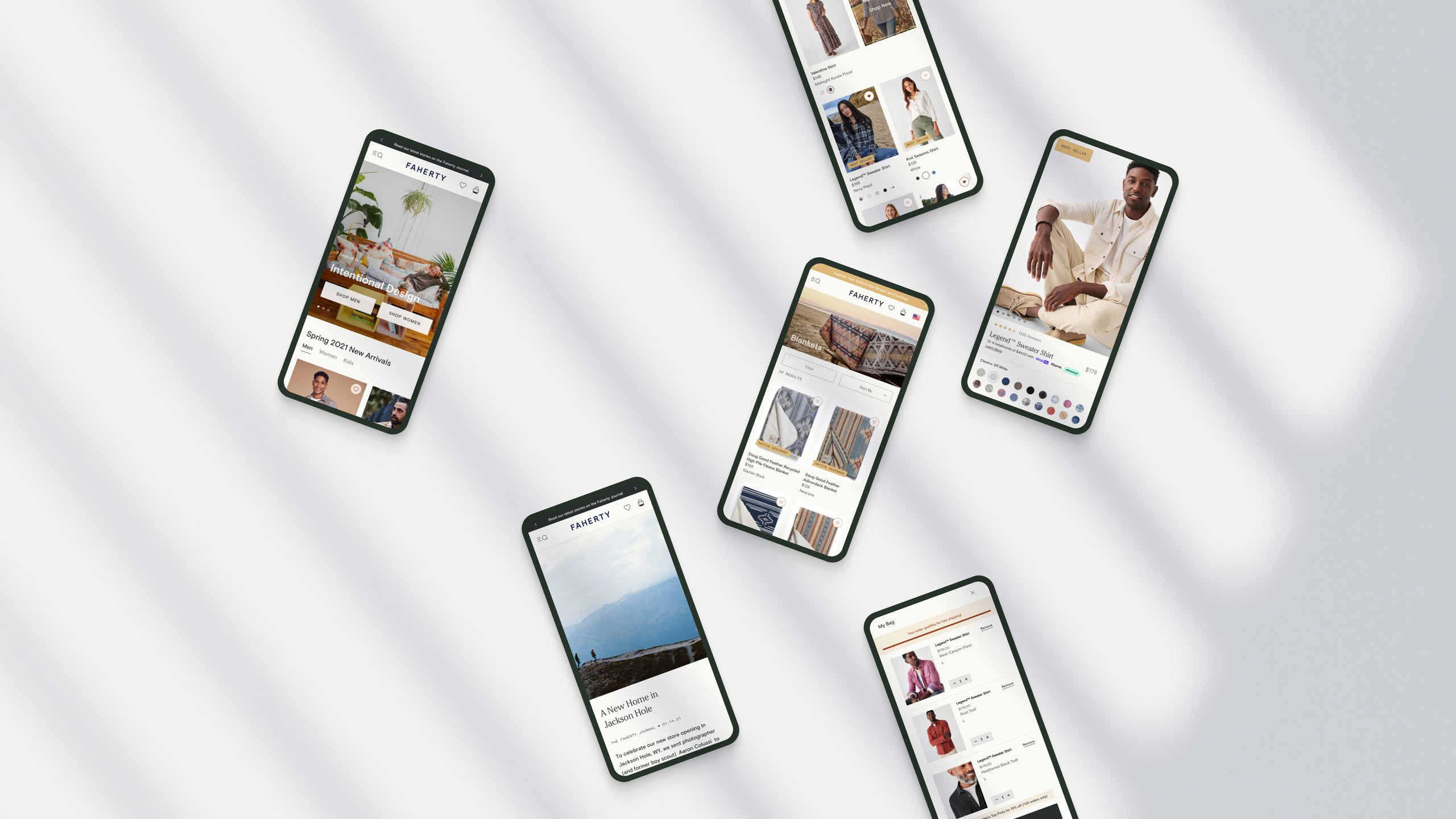 To establish the site's visual language, we created style tiles that tested typography, colors, and photography. Weekly co-reviews with Faherty's brand and marketing teams helped us strike a balance between brand storytelling and performance.